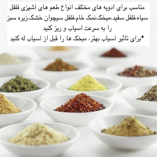 • آسیاب دقیق انواع فلفل، نمک، زیره و سایر ادویه‌ها