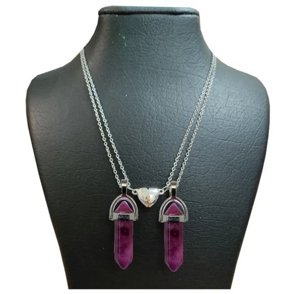 - ست 2 عددی گردنبند با آویز منشوری و قلب آهنربایی